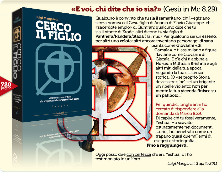 Analizzando criticamente la vicenda di Yeshu’a, si palesa una impressionante serie di particolari il cui vero senso ha connotazioni radicalmente diverse da quelle che la tradizione tramanda. Reale significato delle espressioni “regno di Dio” e “stirpe davidica”, “amore per Dio al primo posto” (la «Quarta Filosofia» denunciata da Flavio Giuseppe), rivendicazione sociopolitica («gli ultimi saranno i primi»), laicità antagonistica alla casta sacerdotale, origine galilaica, “dottorato” giudaico, «lo zelo mi consuma», tassazione imperiale (accettata ma anche rifiutata), proclamazione delle “doglie messianiche”, promessa di “segni” (divini) degli aspiranti al trono di Israele, “ritiro nel deserto”, Nazireato, preavviso di martirio ai seguaci, non ultima l’inspiegabile morte per crocifissione come “re dei Giudei”... quando estirpiamo tutti questi tratti distintivi di Gesù dall’atmosfera sospesa dei Vangeli e li innestiamo nella cruda storia ebrea del I Sec., con nostro grande sconcerto “Gesù Cristo” diventa decisamente e inesorabilmente qualcos’altro.